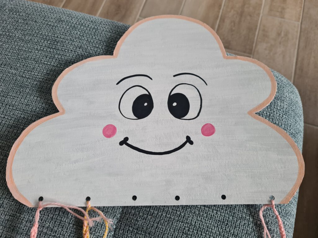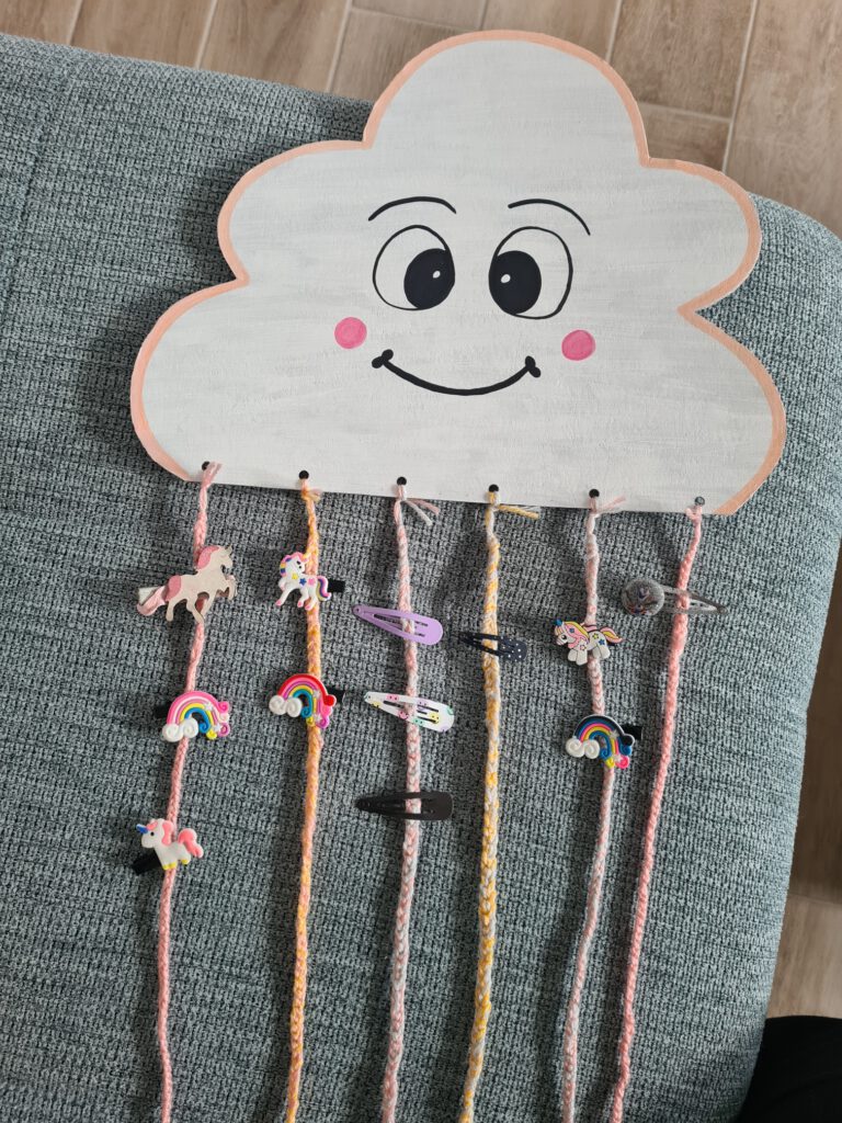 Je nach Geschmack kannst du den Haarspangenhalter zusätzlich noch mit kleinen Details verzieren, zum Beispiel mit Glitzer, aufgemalten Wolken, Sternen oder Blumen.